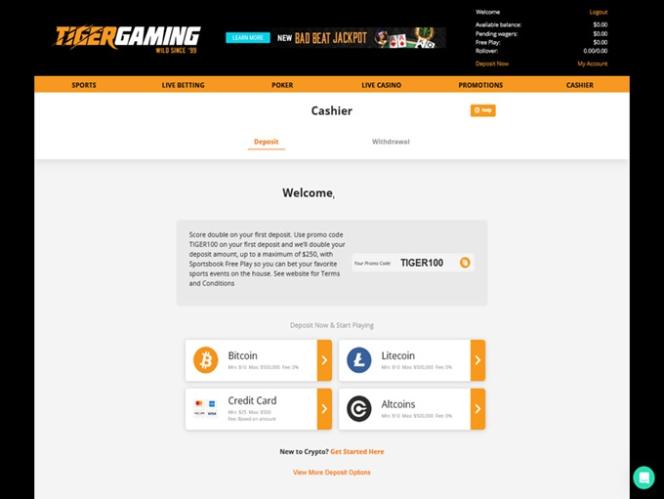 كازينو TigerGaming مدعوم بواسطة BetSoft, Rival and Visionary iGaming ، وتُقدم ألعاب الكازينو عبر برنامج قابل للتنزيل، بالإضافة إلى منصة لعب فوري عبر الإنترنت. منصة اللعب عبر الإنترنت هي خياري المفضل، إذ توفر جميع الميزات اللازمة للاستمتاع الكامل بالكازينو. لا يدعم الكازينو حاليًا اللعب عبر الهاتف المحمول.