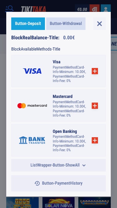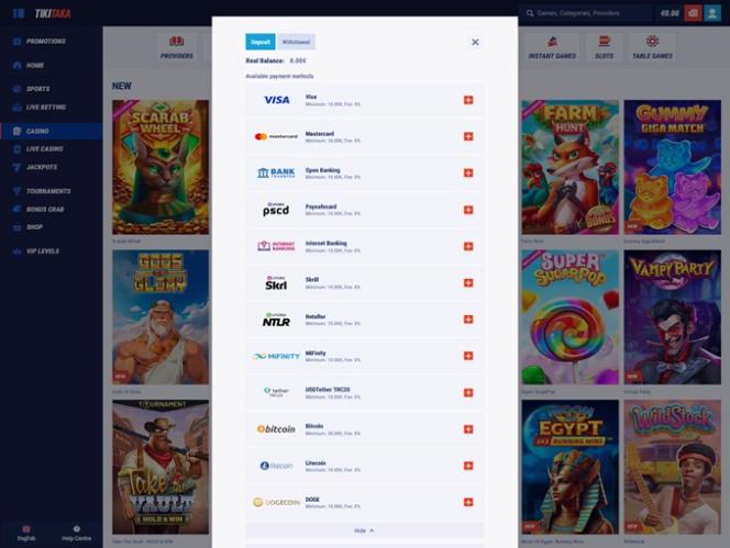 خيارات الخدمات المصرفية في TikiTaka Casino