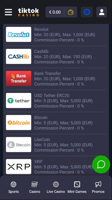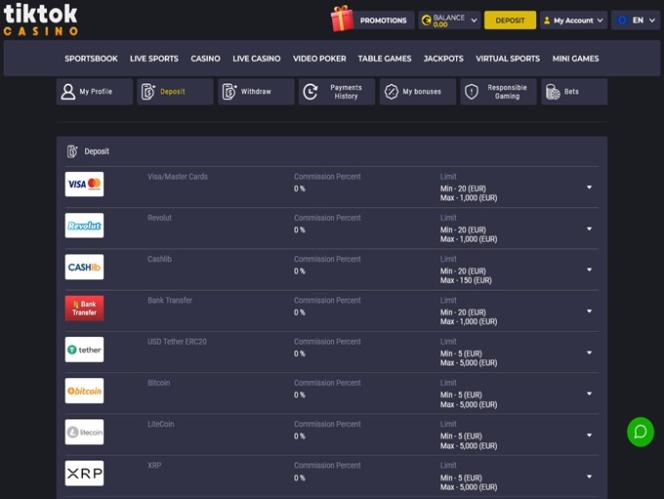 خيارات الخدمات المصرفية في TikTok Casino
