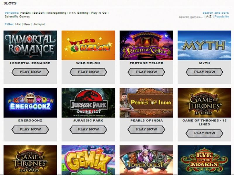 تتوفر مجموعة كبيرة من ألعاب السلوتس، حيث يمكن للاعبين تجربة ألعاب من Net Ent وMicrogaming وPlay'n GO وNYX وBetsoft وScientific Games. تأتي هذه الألعاب بشكل رئيسي على شكل ألعاب فيديو سلوتس، بالإضافة إلى مجموعة متنوعة من الألعاب الكلاسيكية. تتوفر جوائز كبرى تصاعدية تتيح لك الثراء بلفّة واحدة للبكرات، كما يتوفر دعم لألعاب السلوتس على الهواتف المحمولة.برنامج نقاط المنافسة