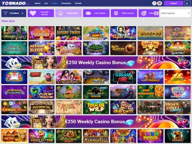 Evolution وNetEnt وBlueprint و iSoftBet هي بعض العلامات التجارية التي تضمّ روائعها في مكتبة TornadoBet. هذا يعني أنه يمكن للاعبين العثور على مجموعة واسعة من إصدارات ماكينات القمار، بالإضافة إلى تشكيلة واسعة من ألعاب الموزع المباشر وألعاب الطاولة.