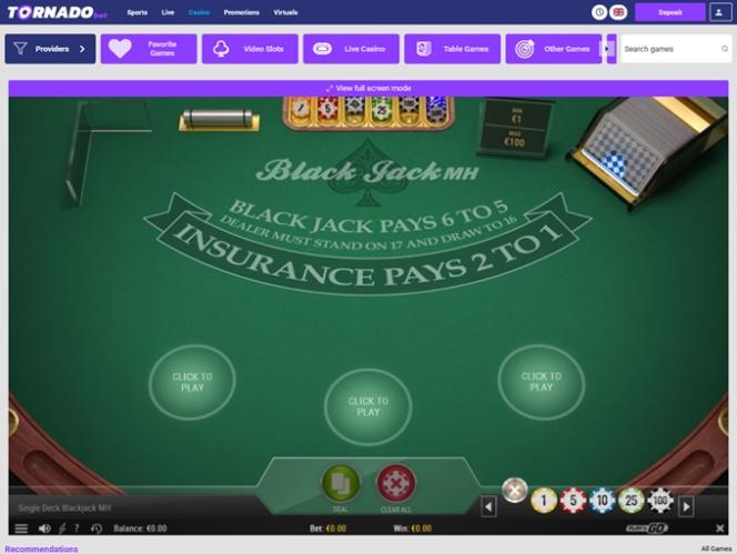 لم يحصل TornadoBet Casino على تأييد من Wizard of Odds.