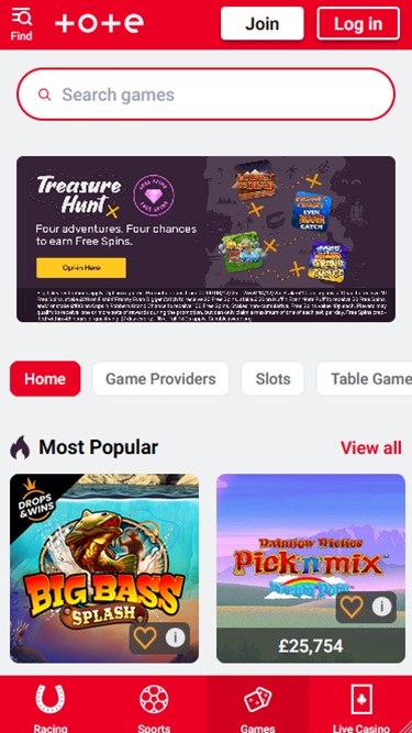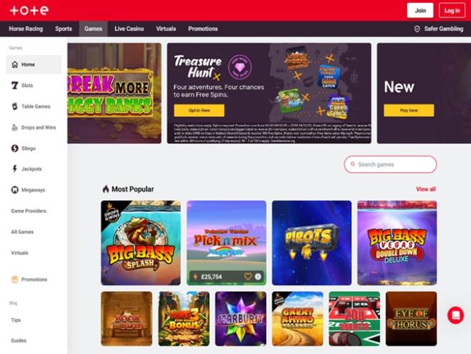 بالإضافة إلى الكازينو التقليدي، يقدم Totesport للاعبيه قسمًا كاملاً للمراهنات الرياضية واليانصيب.