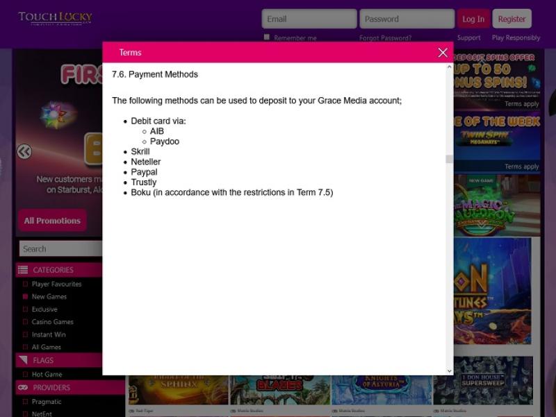 خيارات الخدمات المصرفية في Touch Lucky Casino
