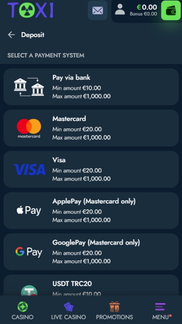 على سبيل المثال، يقدم كازينو Toxi خدماته بشكل أساسي للعملاء القادمين من كندا وألمانيا والنمسا وفنلندا والدنمارك والنرويج والسويد، لذا قد يعني هذا أن جميع المكافآت لن تكون متاحة لجميع البلدان، لذا ضع ذلك في الاعتبار.
