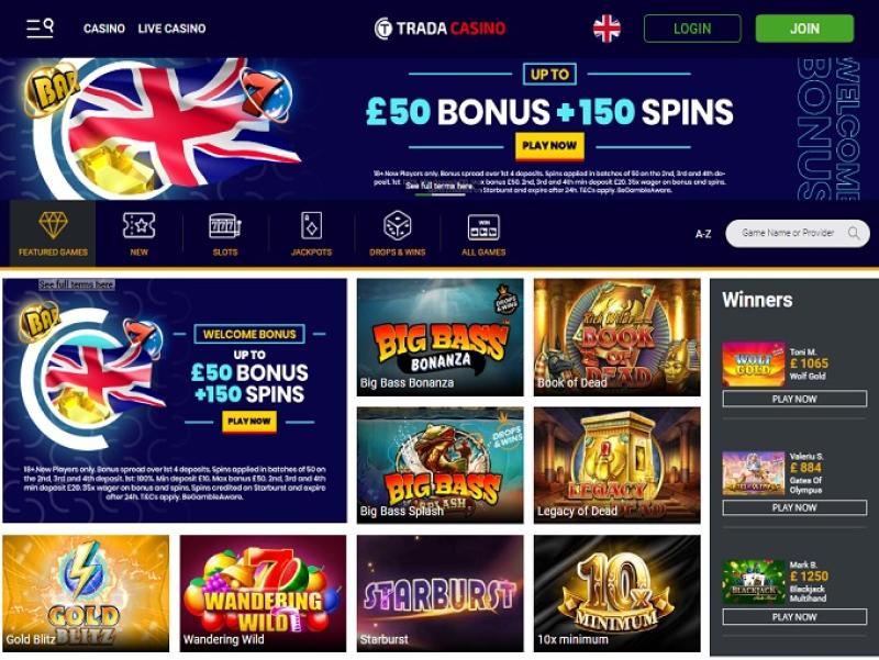 كازينو ترادا هو موقع مراهنات إلكتروني تأسس عام ٢٠١٤، وتديره شركة ترادا جيمز (جزيرة مان) المحدودة. واجه الكازينو بعض المشاكل لبضعة أشهر عند إطلاقه، لكن الشركة قررت في النهاية إطلاق منصة جديدة رائعة. يقدم كازينو ترادا مجموعة مختارة من مئات الألعاب، وسحوبات سريعة جدًا، وشروط مكافآت ممتازة، وهو وجهة مثالية لأي لاعب يبحث عن موقع جديد.