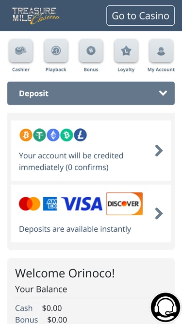 كازينو تريجر مايل مدعوم من BetSoft, Evolution Gaming, Rival, Saucify and Genii ، مما يوفر له مكتبة ألعاب غنية ومنصة فريدة. يتوفر الكازينو عبر برنامج قابل للتنزيل، بالإضافة إلى منصة ويب تتيح لك اللعب عبر متصفح الويب. كما يتوفر موقع جوال، يتيح للاعبين اللعب عبر الهواتف الذكية أو الأجهزة اللوحية.خيارات الخدمات المصرفية في Treasure Mile