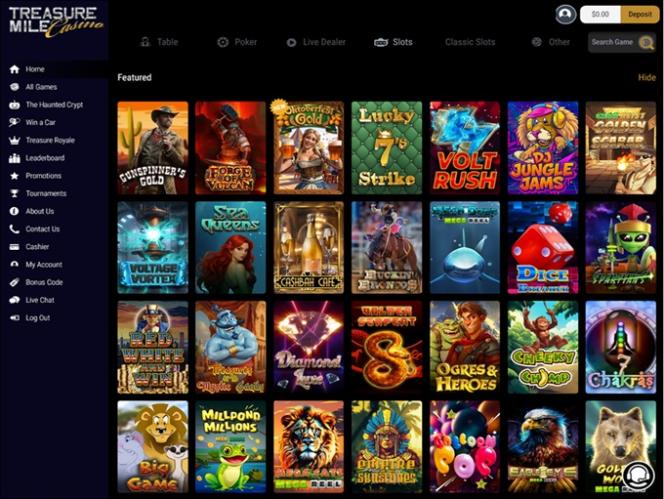 تشكل ماكينات القمار جزءًا كبيرًا من مكتبة كازينو Treasure Mile، حيث يقدم الكازينو كلًا من ماكينات القمار بالفيديو والماكينات الكلاسيكية للمقامرين.برنامج نقاط المنافسة