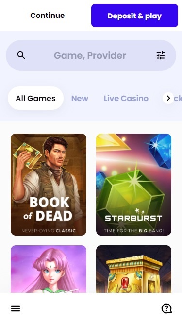 يقدم المشغل خيار الدفع واللعب والذي يسمح بالتسجيل الفوري بمجرد أن يختار اللاعبون طريقة الدفع المفضلة لديهم ويقومون بإيداع.