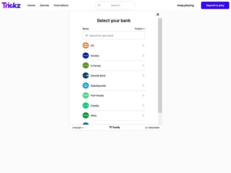 المعاملات المصرفية في هذا الكازينو آمنة وسريعة. يوفر المشغل خيار الدفع "ادفع والعب"، ورغم عدم توفر مدفوعات العملات المشفرة، فإن الإيداع والسحب من وإلى كازينو Trickz مريحان للغاية.