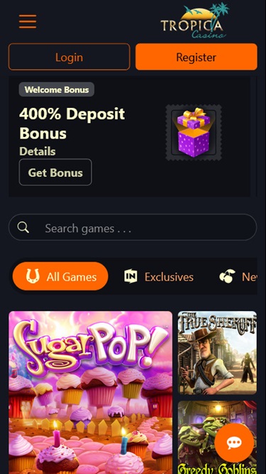 لا يقدم كازينو Tropica برنامج تعويض لعملائه.معلومات الترخيص
