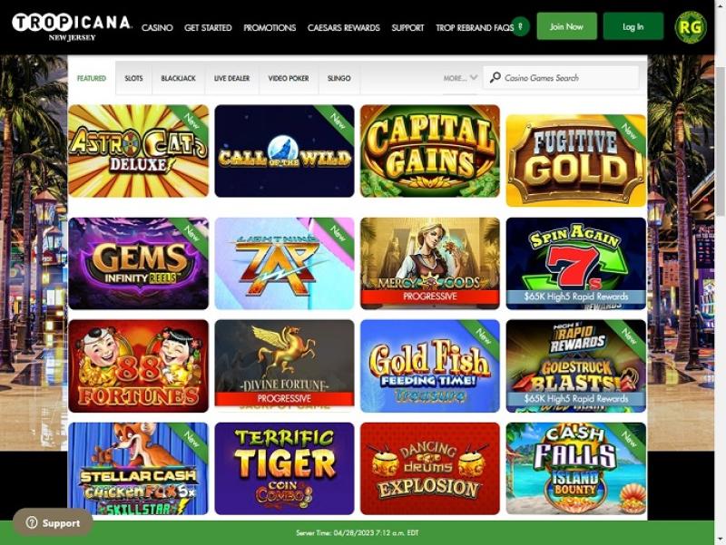 تُقدّم تروبيكانا العشرات من ألعاب الفيديو سلوتس، ما يتيح للعملاء اختيار ألعاب ذات طابع خاص. ستجد ألعابًا مرخصة مثل Ghostbusters، بالإضافة إلى ألعاب سلوتس شهيرة مثل Wolf Run. كما تُقدّم جوائز كبرى جماعية، ويمكن لعب العديد من الألعاب على الأجهزة المحمولة. والنتيجة مكتبة ألعاب محترمة تُحافظ على مكانتها في ولاية جاردن ستيت.برنامج نقاط المنافسة