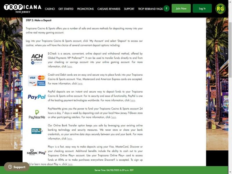الخدمات المصرفية ممتازة، حيث يدعم الكازينو بطاقات الائتمان والمحافظ الإلكترونية والتحويلات المصرفية للإيداع والسحب. أوقات السحب معقولة، وإن لم تكن فورية. كما يمكنك صرف أرباحك في كازينو تروبيكانا.