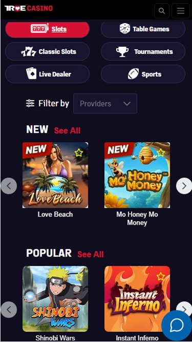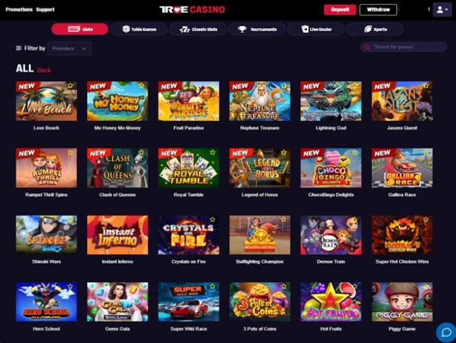 لعروض الكازينو التي تقدمها، تتعاون True Poker مع العديد من مزودي البرامج المرموقين لتقديم مجموعة واسعة من الألعاب. من بين الأسماء البارزة في مكتبة الكازينو الخاصة بها: