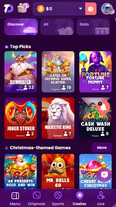 يوجد كازينو مباشر كامل على TrustDice، يتيح لك لعب ألعاب الطاولة عبر البث المباشر. كما يضم الموقع قسمًا للمراهنات الرياضية، ويدعم مراهنات الرياضات الإلكترونية.