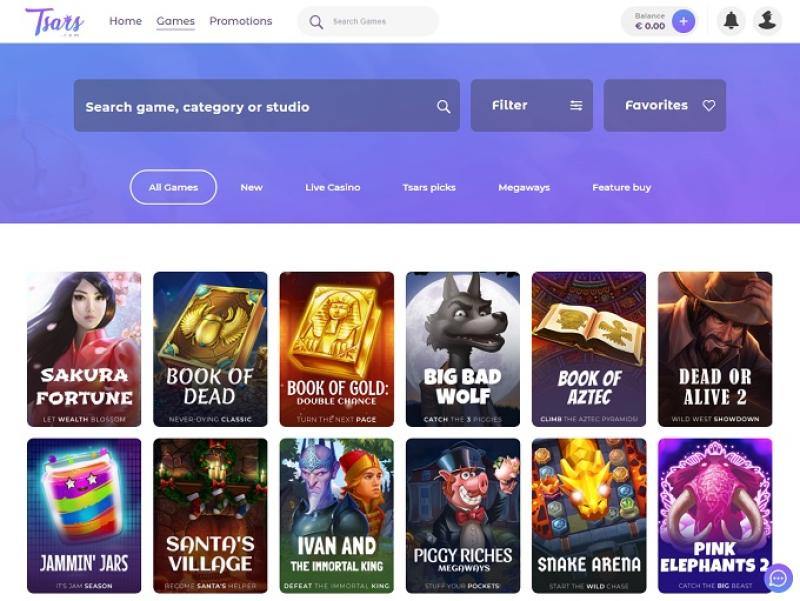 بالإضافة إلى ألعاب الكازينو القياسية المعروضة، يحتوي كازينو Tsars على قسم كامل للموزع المباشر حيث يمكن للمقامرين لعب البلاك جاك والبكاراة والروليت والبوكر والمزيد.مشاكل اللاعبين