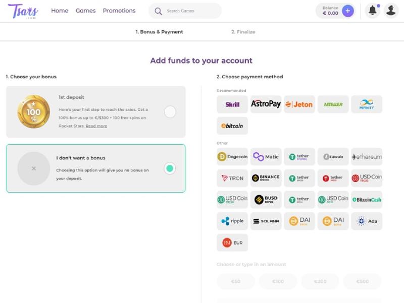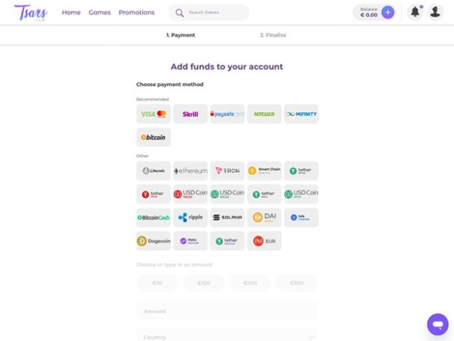 ستجد أدناه خيارات الإيداع والسحب المتنوعة في كازينو Tsars.