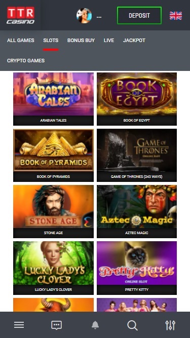 يعمل كازينو TTR بواسطة Microgaming, Playtech, BetSoft, Amatic Industries, ELK Studios, Evolution Gaming, Habanero Systems, iSoftBet, Play'n GO, Quickspin, SOFTSWISS, Thunderkick, Yggdrasil, Endorphina, GameArt, Pragmatic Play, Red Tiger Gaming, LuckyStreak, Spinomenal, Red Rake Gaming, Belatra Games, Fantasma Games, Platipus Gaming, BGAMING, Evoplay, Holle Games, Buck Stakes Entertainment, Games Global, Amusnet Interactive, Blueprint Gaming, Merkur Gaming, Iron Dog Studio and Hacksaw Gaming ، وتُقدم ألعاب الكازينو عبر منصة لعب فوري عبر الإنترنت، تتيح لك التسجيل والإيداع واللعب والسحب، كل ذلك عبر متصفح الإنترنت. كما يدعم اللعب عبر الهاتف المحمول، ما يتيح لك الاستمتاع بمجموعة واسعة من الألعاب عبر هاتفك الذكي أو جهازك اللوحي.المقامرة المسؤولة ودعم العملاء والأمان