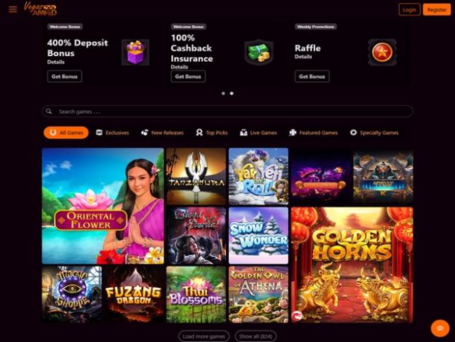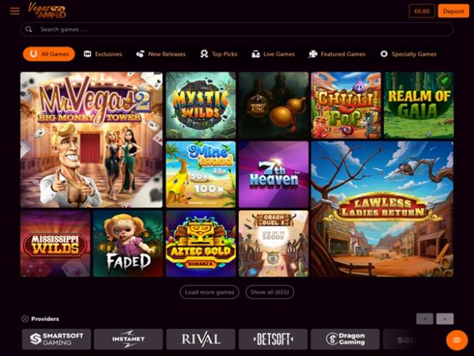 كازينو فيغاس أمبد يعمل بنظام BetSoft, Genesis Gaming, Rival, Saucify, Vivo Gaming, Spinomenal, Felix Gaming, Fugaso, Radi8 Games, Fresh Deck Studios, Woohoo Games, Qora Games, SmartSoft Gaming, Tom Horn Gaming, Genii, Wager Gaming, Dragon Gaming and Dragoon Soft ، وتُقدم ألعاب الكازينو عبر برنامج قابل للتنزيل، بالإضافة إلى منصة لعب فوري عبر الإنترنت. كما يدعم الكازينو اللعب عبر الهاتف المحمول، ما يتيح لك اللعب من أي مكان تتوفر فيه إشارة إنترنت.المقامرة المسؤولة ودعم العملاء والأمان