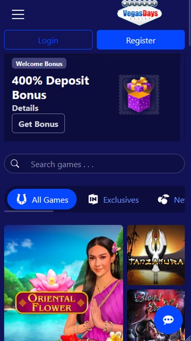 يتم تشغيل Vegas Days Casino بواسطة BetSoft, Genesis Gaming, Rival, Saucify, Vivo Gaming, Spinomenal, Felix Gaming, Fugaso, Radi8 Games, Fresh Deck Studios, Woohoo Games, Qora Games, SmartSoft Gaming, Tom Horn Gaming, Genii, Wager Gaming, Dragon Gaming and Dragoon Soft ، والذي يتيح للمقامرين فرصة لعب ألعاب الكازينو من خلال نموذج اللعب الفوري بالإضافة إلى برنامج قابل للتنزيل.ألعاب أخرى