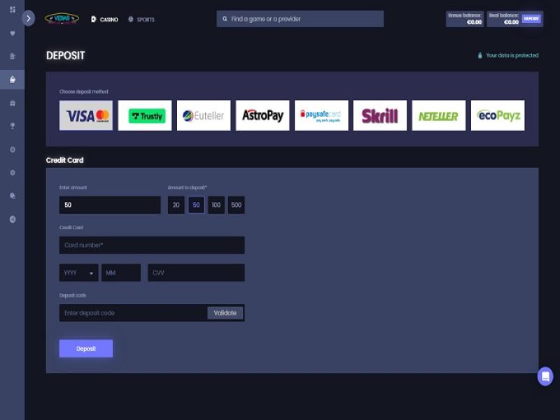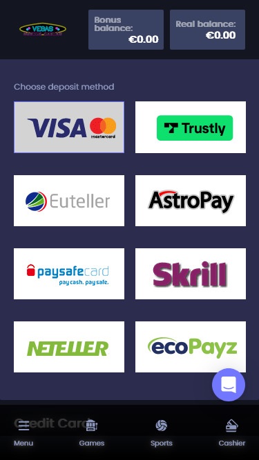 خيارات الخدمات المصرفية في Vegas Mobile Casino