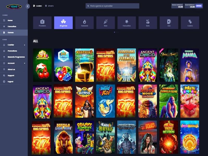 يتم تشغيل Vegas Mobile Casino بواسطة Microgaming, Net Entertainment, 1x2gaming, Barcrest, Big Time Gaming, ELK Studios, Evolution Gaming, EYECON, Genesis Gaming, lightningboxgames, Play'n GO, playson, Quickspin, Rabcat, Thunderkick, Vivo Gaming, Wazdan, BetConstruct, Nolimit City, LuckyStreak, Skillzzgaming, Fantasma Games, Triple Edge Studios, Stormcraft Studios, Switch Studios, All41 Studios, TVBet, Gameburger Studios, Pulse 8 Studios, Neon Valley Studios, Super Spade Games, Games Global, 2by2 Gaming, Blueprint Gaming, Games Warehouse, NextGen, ProgressPlay, Tom Horn Gaming, WMS, Inspired Gaming, Genii, Red7Mobile, CORE Gaming, Scientific Games, Iron Dog Studio, Foxium, Betdigital, Just For The Win, PearFiction Studios, Slingshot Studios, Fortune Factory Studios, Gamevy, Crazy Tooth Studio, Alchemy Gaming and Half Pixel Studios ، ويتم توفير ألعاب الكازينو من خلال منصة اللعب الفوري المستندة إلى الويب والتي تسمح للاعبين بلعب الألعاب على هواتفهم الذكية أو أجهزتهم اللوحية.