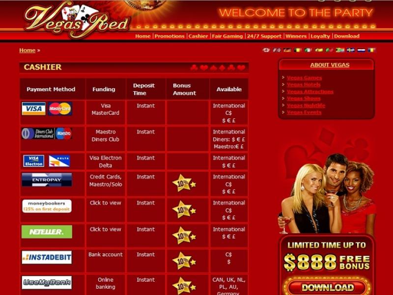 خيارات الخدمات المصرفية في Vegas Red Casino