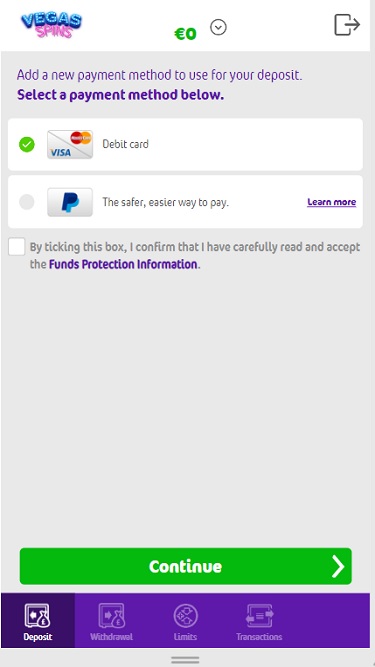 عند قراءة الشروط والأحكام في كازينو فيغاس سبينز، لا يوجد ما يُظهر عدم عدالة أو استغلالًا للاعبين. يتميز النظام المصرفي في فيغاس سبينز بالكفاءة، حيث تتم معالجة عمليات الإيداع والسحب عبر فيزا، وباي بال، وواير، ومايسترو، وإنتروباي، وماستركارد. كما يمكن معالجة عمليات الإيداع عبر باي سيف كارد، والسحب عبر الشيكات. مدة الانتظار 48 ساعة لجميع عمليات السحب، ويمكن صرف الدفعات خلال 24 ساعة إلى 7 أيام. يوجد حد أقصى للسحب يبلغ 3,000 جنيه إسترليني يوميًا، و5,000 جنيه إسترليني أسبوعيًا، و10,000 جنيه إسترليني شهريًا، وهو لا ينطبق على الجوائز الكبرى التراكمية.خيارات الخدمات المصرفية في Vegas Spins Casino