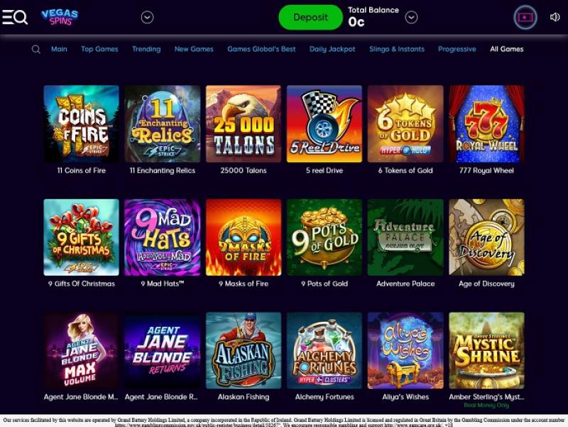كازينو فيغاس سبينز يعمل بنظام Microgaming, Net Entertainment, Barcrest, Big Time Gaming, Dragonfish, EYECON, iSoftBet, lightningboxgames, Quickspin, Realistic Games, IGT, Shuffle Master, Games Global, Wizard Games, Ainsworth, Bally Technologies, Blueprint Gaming, NextGen, Pariplay, WMS, Inspired Gaming, Gaming Realms, SG Interactive, High 5 Games and AGS Interactive ، وتُقدم ألعاب الكازينو عبر منصة لعب فوري عبر الإنترنت، تتيح لك التسجيل واللعب والدفع عبر متصفح الإنترنت. كما يدعم الكازينو اللعب عبر الهاتف المحمول، ما يتيح لك الاستمتاع بمكتبة الألعاب على هاتفك الذكي أو جهازك اللوحي.المقامرة المسؤولة ودعم العملاء والأمان
