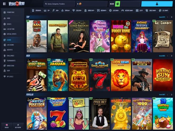 يبدو أن فريق VegasHero أدرك هذا الأمر، ولذلك بذلوا جهودًا كبيرة لاستضافة كتالوج ضخم من ألعاب الكازينو ومُزوّدي البرامج ليتمكن مستخدموها من الاستمتاع بها. وحتى كتابة هذه المراجعة، حصلت الشركة على تراخيص من أكثر من 140 مُزوّد برامج فريد ، وهو رقم ضخم سيُقدّره كلٌّ من اللاعبين المُحنّكين والمبتدئين.