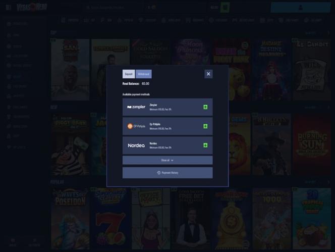 لإدارة أموالك في الكازينو، يمكنك استخدام عدة طرق مصرفية، بما في ذلك فيزا ، وماستركارد ، وسكريل ، ونتلر ، والتحويل البنكي ، وباي سيف كارد ، ومي فينيتي ، ونورديا ، وإنتراك . كما يمكن للاعبين سحب وإيداع الرصيد باستخدام العديد من العملات المشفرة مثل بيتكوين ، وبيتكوين كاش ، وكاردانو ، ودوجكوين ، وإيثريوم ، ولايتكوين ، و USD Coin ، وتيثر ، وريبل .