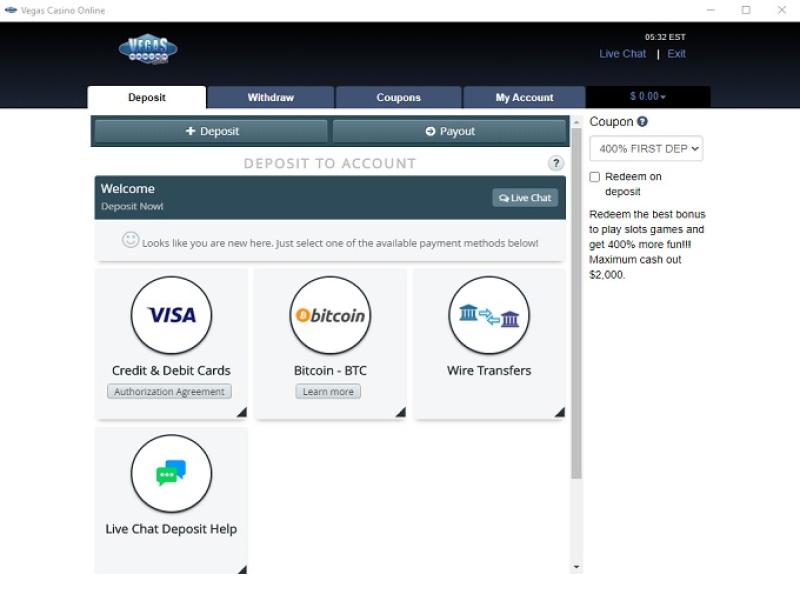 خيارات الخدمات المصرفية في Vegas Casino Online