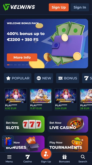 يُعدّ Velwins كازينوًا ضخمًا على الإنترنت، مُخصّصًا بشكل أساسي للاعبين منهولندا ، ويُقدّم عددًا كبيرًا من ألعاب الكازينو وخيارات المراهنات الرياضية. يضمّ الموقع أكثر من 9000 لعبة، تشمل ماكينات القمار الإلكترونية، وألعاب الموزعين المباشرين، وألعاب الطاولة، وألعاب الحظّ الفوري، كما يُقدّم مجموعةً مميزةً من العروض الترويجية والمكافآت.