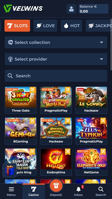 في حالة كازينو Velwins، لن يكون هناك نقص في الألعاب الرائعة. فقد أولى الكازينو اهتماماً بالغاً بتشكيلته، حيث يشير موقعه الإلكتروني إلى وجود أكثر من 9000 إصدار فريد من تطوير ما يقارب 80 مطور برامج ، معظمهم معروفون بإنتاج ألعاب عالية الجودة.