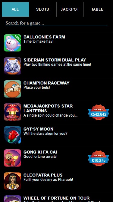 يُقدّم كازينو Very Vegas Mobile Casino مجموعةً واسعةً من ألعاب السلوتس، وسيجد اللاعبون مجموعةً متنوعةً من ألعاب الفيديو، بالإضافة إلى مجموعةٍ من الألعاب الكلاسيكية. غالبًا ما تُستمدّ هذه الألعاب من ألعاب السلوتس الشهيرة التي تُقدّمها الكازينوهات التقليدية، وتُقدّم سماتٍ وميزاتٍ رائعةً على جهازك المحمول. لكنّ المشكلة الوحيدة هي أنّ خيارات الألعاب في هذا الكازينو المُخصّص للهواتف المحمولة ليست واسعةً مقارنةً ببعض الكازينوهات الأخرى المُتوافقة مع الهواتف المحمولة في هذا المجال. كما يُمكن الفوز بجوائز MegaJackpots Progressive من IGT.برنامج نقاط المنافسة