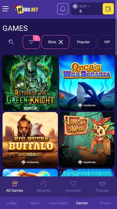 كما ذكرنا سابقاً، يأتي كازينو VibroBet بمجموعة ألعاب وفيرة للغاية، وهو إنجاز تحقق من خلال الشراكة مع أكثر من 50 مطور ألعاب إلكترونية معروفين يقومون بتزويد المكتبة باستمرار بألعاب جديدة.