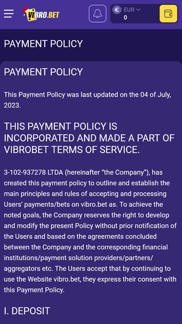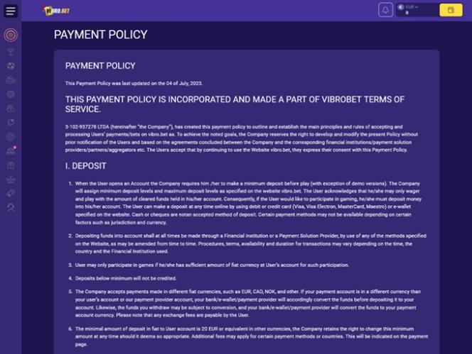 لكن قبل أن نبدأ، من المهم أن ندرك أن كازينو VibroBet يعمل حاليًا بدون ترخيص ، إذ لا توجد أي شهادات منشورة على موقعه الإلكتروني تشير إلى خلاف ذلك. مع ذلك، لا يعني هذا بالضرورة أن الموقع غير موثوق، لكننا ننصح بالحذر ، لذا ضع هذا في اعتبارك قبل الانضمام إليه.