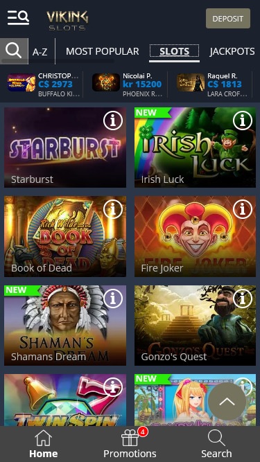 كازينو VikingSlots يعمل بنظام Amaya, Microgaming, Net Entertainment, 1x2gaming, Amatic Industries, EYECON, iSoftBet, lightningboxgames, Oryx, Play'n GO, Quickspin, Rabcat, Wazdan, Realistic Games, Booming Games, Stakelogic, Pragmatic Play, Nolimit City, GAMING1, Red Tiger Gaming, Red Rake Gaming, Skillzzgaming, SYNOT Games, Sigma Gaming, Skywind, Real Dealer Studios, Games Global, Wizard Games, 2by2 Gaming, Ainsworth, Aristocrat, Ash Gaming, Blueprint Gaming, NeoGames, NextGen, Pariplay, Tom Horn Gaming, Inspired Gaming, Gamomat, Scientific Games, Authentic Gaming, Bally Wulff, Old Skool Studios, Foxium, Just For The Win, Gamevy and High 5 Games ، وتُقدم ألعابه عبر منصة لعب فوري عبر الإنترنت، ما يتيح لك اللعب عبر متصفح الإنترنت. كما يدعم الكازينو اللعب عبر الهاتف المحمول، ما يتيح لك اللعب عبر هاتفك الذكي أو جهازك اللوحي.