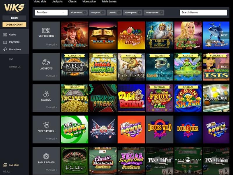 يضم كازينو VIKS مئات من ماكينات القمار، بالإضافة إلى مجموعة صغيرة وعالية الجودة من الألعاب الكلاسيكية. كما يقدم الكازينو جوائز كبرى تصاعدية تُمكّن اللاعبين من الثراء الفوري.برنامج نقاط المنافسة