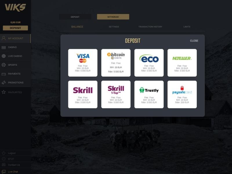 كازينو VIKS مدعوم من Microgaming, Net Entertainment, Evolution Gaming, Play'n GO, playson, Kalamba, Games Global, Amusnet Interactive, Greentube, Merkur Gaming, NYX Interactive, Genii and Bally Wulff ، وتُقدم ألعابه عبر منصة ويب. كما يتوفر موقع جوال لمن يرغبون في لعب ألعاب الكازينو على هواتفهم الذكية وأجهزتهم اللوحية.خيارات الخدمات المصرفية في VIKS Casino