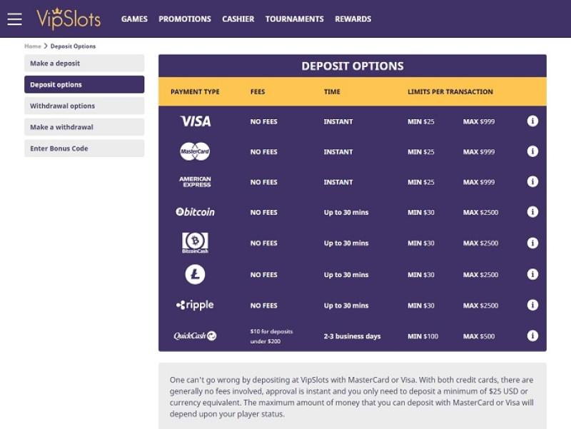 خيارات الخدمات المصرفية في VipSlots Casino