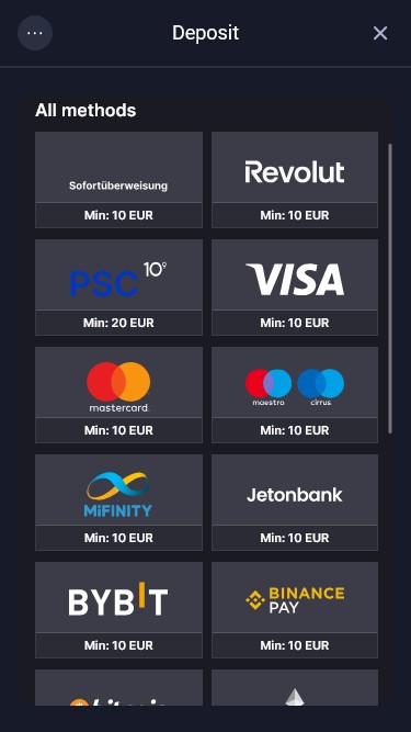 💰 الحد الأدنى للإيداع€10