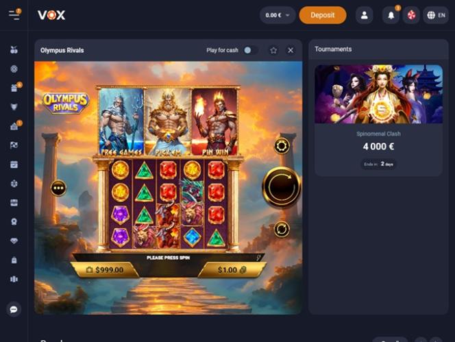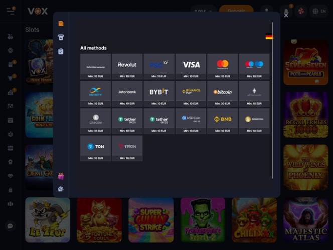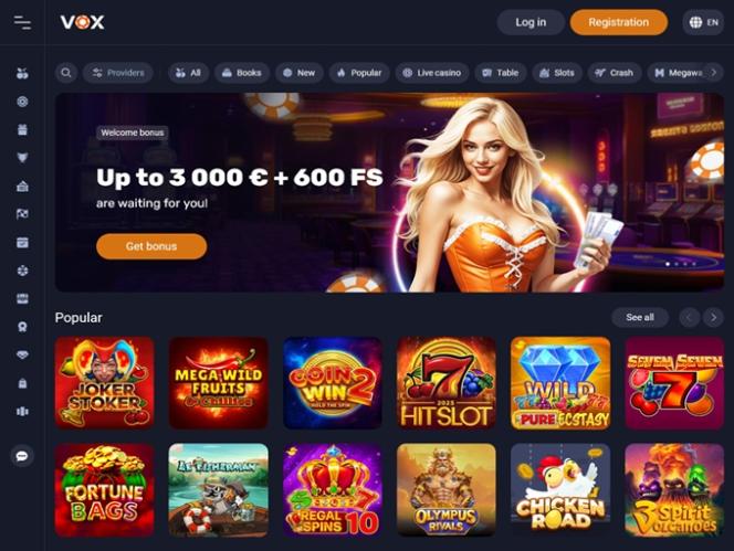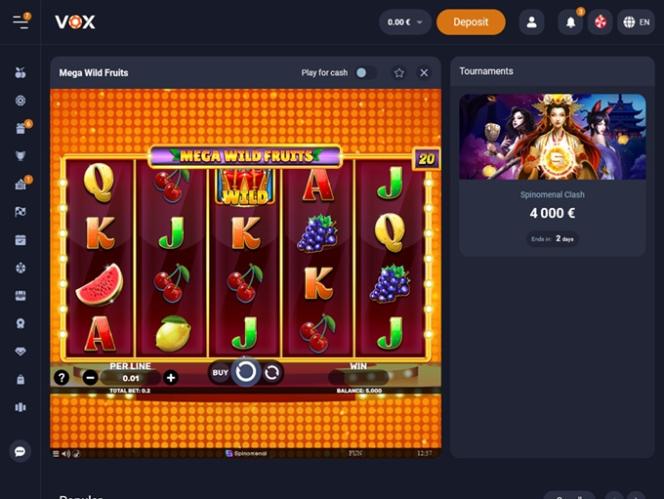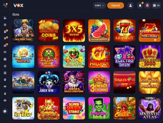 يُعدّ كازينو VOX موقعًا للمقامرة حقق انطلاقة قوية، حيث يُقدّم تشكيلة واسعة من ألعاب الكازينو، بما في ذلك ألعاب الموزع المباشر، وماكينات القمار الإلكترونية، وألعاب الكراش، وألعاب الطاولة، إلى جانب العديد من العروض الترويجية والمكافآت والفعاليات والبطولات المثيرة. ويرحب الكازينو باللاعبين من ألمانيا وليتوانيا ولاتفيا والبرتغال والسويد.
