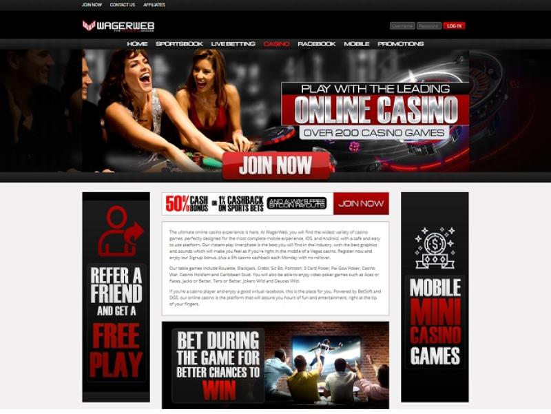 كازينو WagerWeb هو موقع مراهنات إلكتروني يعمل منذ عام ١٩٩٤. في البداية، كان الكازينو يعمل بشكل رئيسي كمراهنات رياضية، إلا أن نشاط الكازينو ازداد رواجًا على مر السنين. يقبل الكازينو لاعبين من جميع أنحاء العالم، بما في ذلك الولايات المتحدة. وقد تعززت سمعة الموقع مؤخرًا بفضل إضافة معاملات بيتكوين، حيث تتم معالجة المدفوعات في نفس يوم العمل.