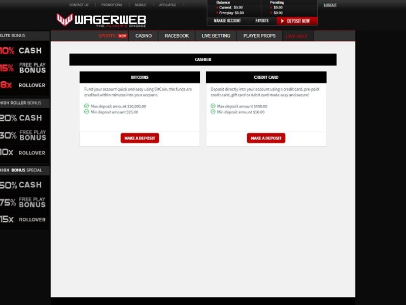 خيارات الخدمات المصرفية في WagerWeb Casino