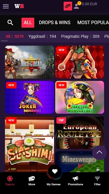 المحتوى المتاح مُنظّم بشكل جيد، وسيتمكن اللاعبون من العثور بسهولة على الألعاب التي يفضلونها أو يرغبون في تجربتها. كما أن جميع ألعاب الكازينو الإلكترونية متاحة على أي جهاز.