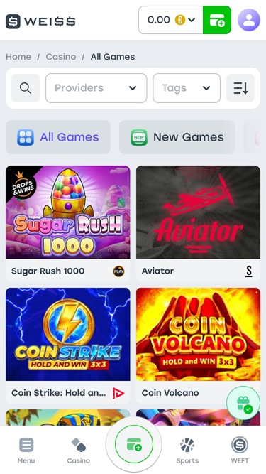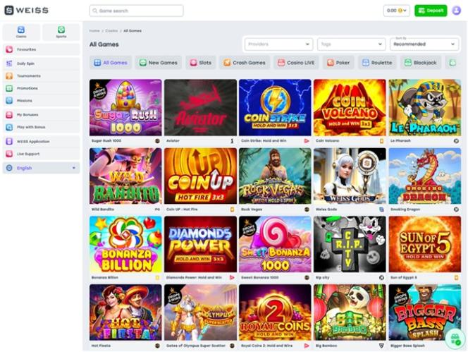 أما بالنسبة لكازينو Weiss، فيمكننا القول بأمان أنه لن تكون هناك مشكلات مثل هذه، حيث بذل المشغلون جهدًا للسماح للاعبين بالاختيار من بين العديد من الأسماء الشهيرة مثل Nolimit City وBetsoft وMicrogaming و Relax Gaming وEndorphina وSpribe وHacksaw gaming، والكثير غيرها.