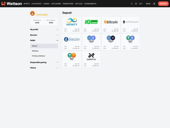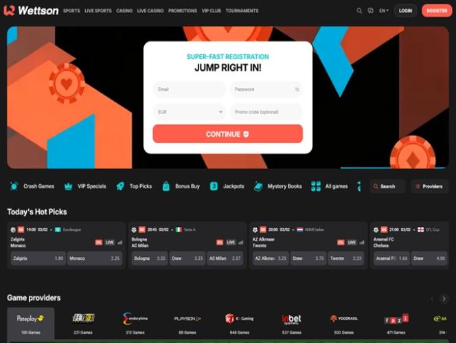 لكن هذا ليس كل شيء. يضم موقع ويتسون أيضًا قسمًا مخصصًا للمراهنات الرياضية، حيث يمكنك الوصول إلى منصة مراهنات ضخمة تضم مجموعة واسعة من الأحداث الرياضية والرياضات الإلكترونية يوميًا. تلبي منصة المراهنات حتى أكثر التفضيلات والاحتياجات تحديدًا، ومن الجدير بالذكر أن اللاعبين يمكنهم أيضًا الاستفادة من المراهنات المباشرة.