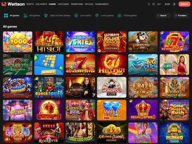 من الواضح أن الفريق القائم على علامة ويتسون التجارية للكازينو أدرك ذلك، فكرّس جهودًا وموارد كبيرة لتقديم تشكيلة واسعة من ألعاب الكازينو. وقد تمكنوا من تحقيق ذلك من خلال الحصول على تراخيص من أكثر من 110 مزودي برامج مختلفين ، وهو عدد ليس بالقليل.