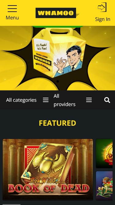 كازينو Whamoo مدعوم بواسطة Net Entertainment, Playtech, BetSoft, 1x2gaming, Amatic Industries, Ezugi, iSoftBet, Oryx, Play'n GO, playson, Thunderkick, Yggdrasil, Wazdan, Booming Games, Stakelogic, Pragmatic Play, Red Tiger Gaming, Spinomenal, Red Rake Gaming, Fugaso, FunFair, FUGA Gaming, Kalamba, Revolver Gaming, Skywind, BGAMING, Fazi, Gluck Games, Slot Factory, Swintt, HungryBear Gaming, Blue Guru Games, Leander Games, Gamomat, BF Games, Bally Wulff, Reflex Gaming, Wild Streak Gaming, Golden Hero, RubyPlay, Gamevy, Japan Technicals Games, Black Pudding Games, Max Win Gaming, Peter And Sons, RAW iGaming, TaDa Gaming, Spribe, Gaming Corps, Atomic Slot Lab, Reel Kingdom and Indigo Magic ، وتُقدم الألعاب عبر منصة لعب فوري عبر الإنترنت، تُتاح باستخدام متصفح الإنترنت. يتميز الموقع بتصميمه الرائع وسهولة تصفحه. بدأت اللعب في غضون دقائق قليلة بعد تسجيل حساب. يدعم الموقع أيضًا اللعب عبر الهاتف المحمول، ما يتيح لك اللعب على هاتفك أو جهازك اللوحي إذا أردت.المقامرة المسؤولة ودعم العملاء والأمان